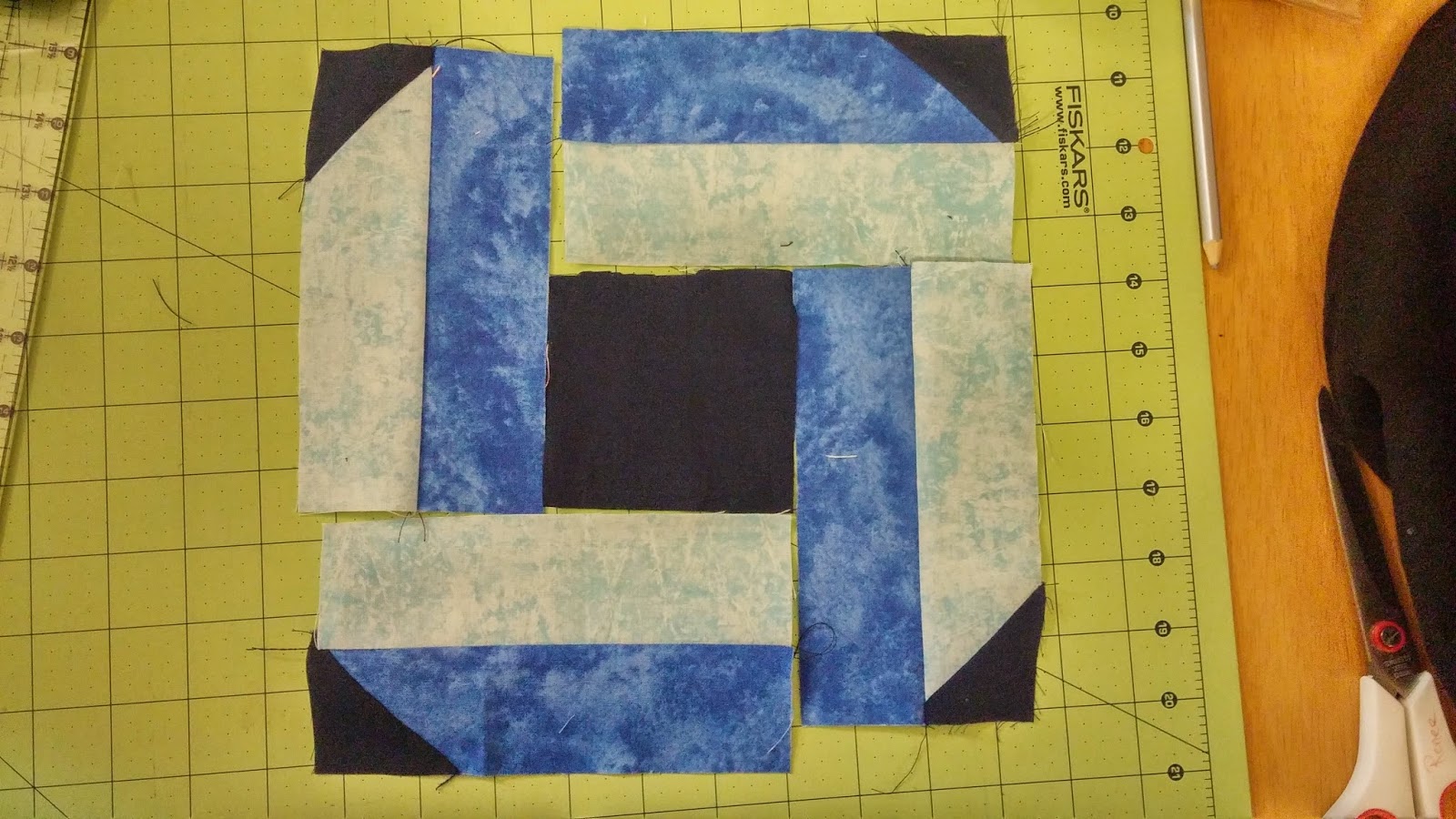 And now you're almost done! This is where the partial seams come into play. Lay out your pieces around your 3.5" x 3.5" center square.